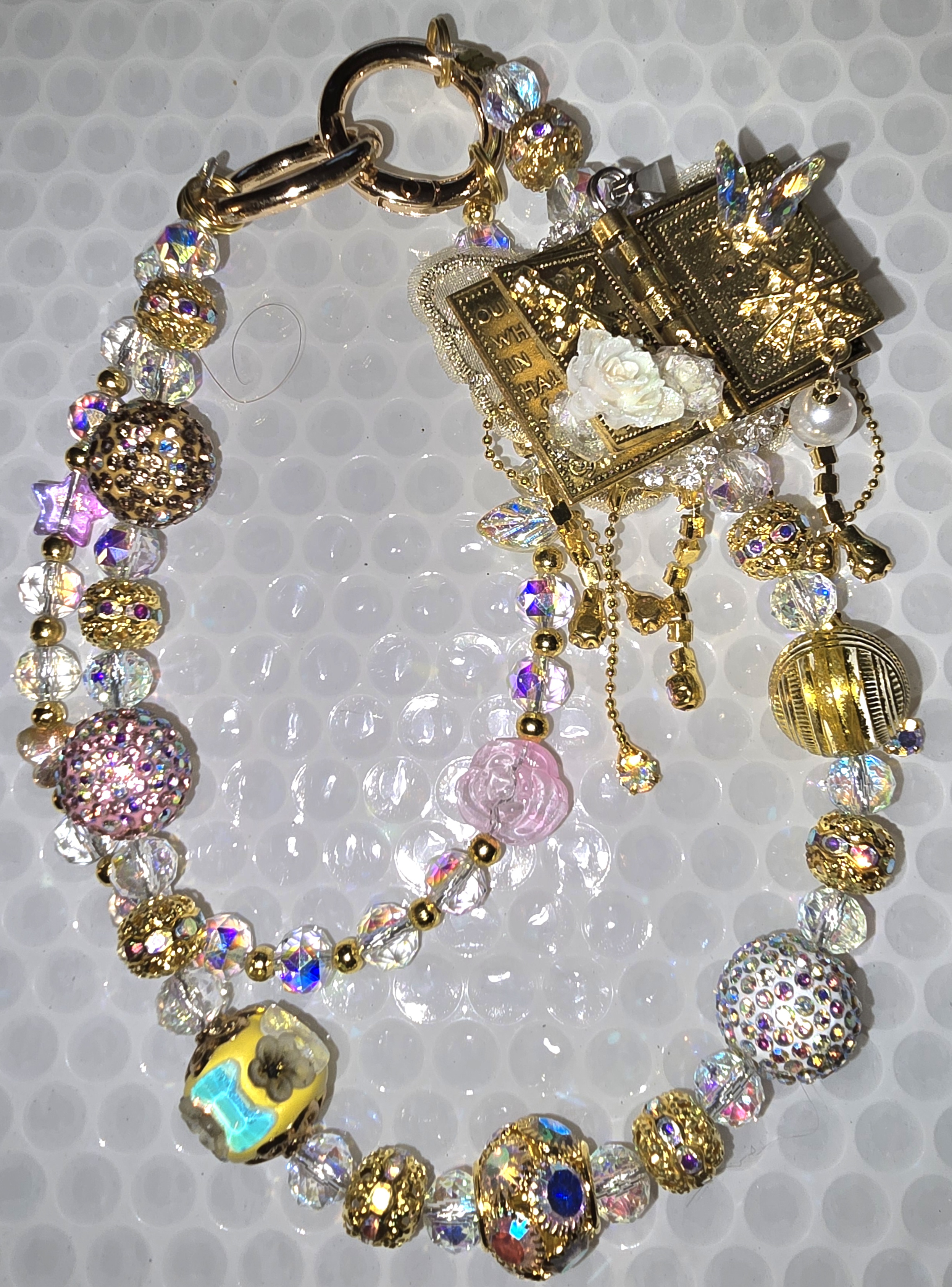 • Pearl Details: Faux pearls nestled among the charms, enhancing the elegance and vintage appeal.