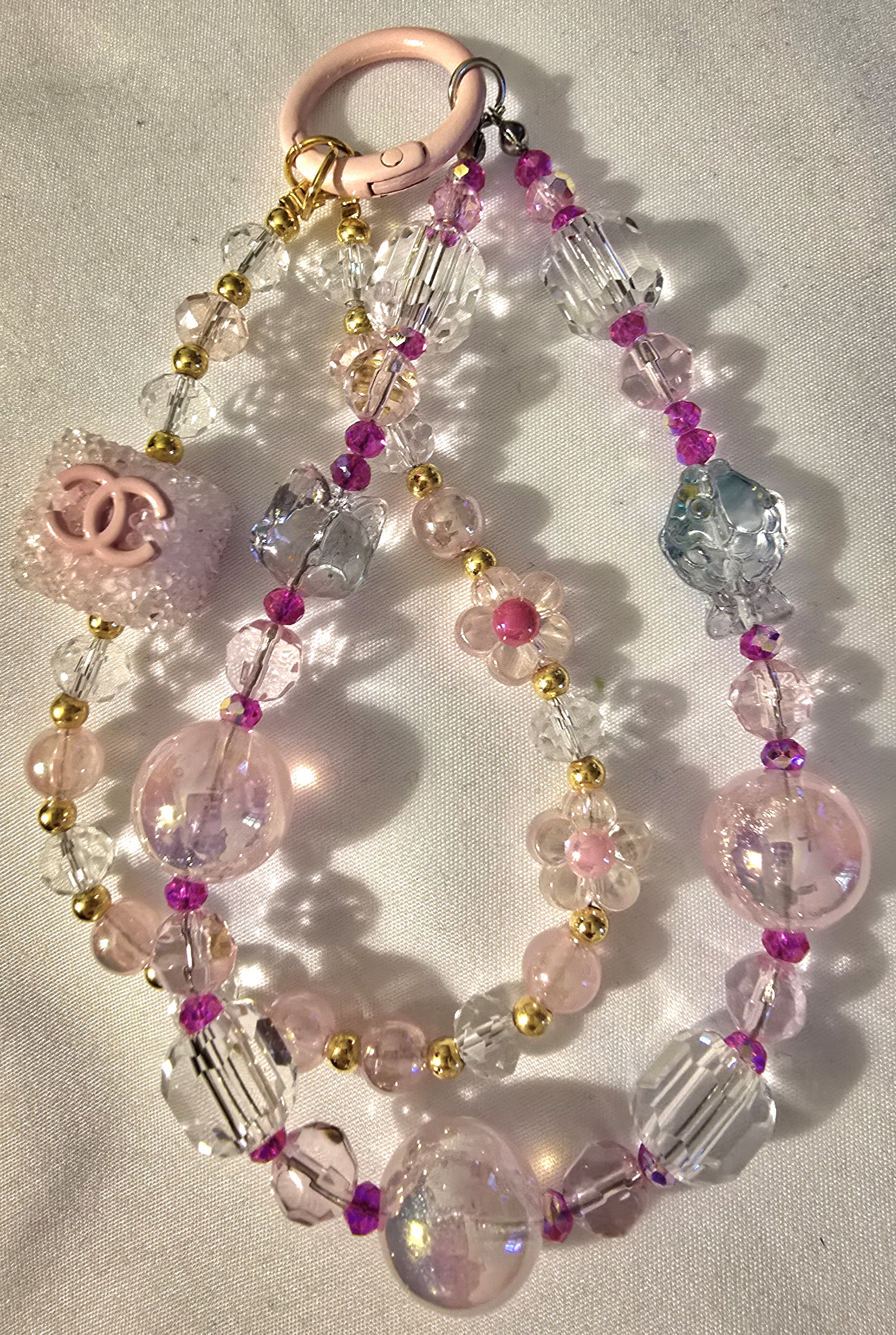 • A standout CC logo bead embedded in a glittery pink square—luxury meets sparkle.