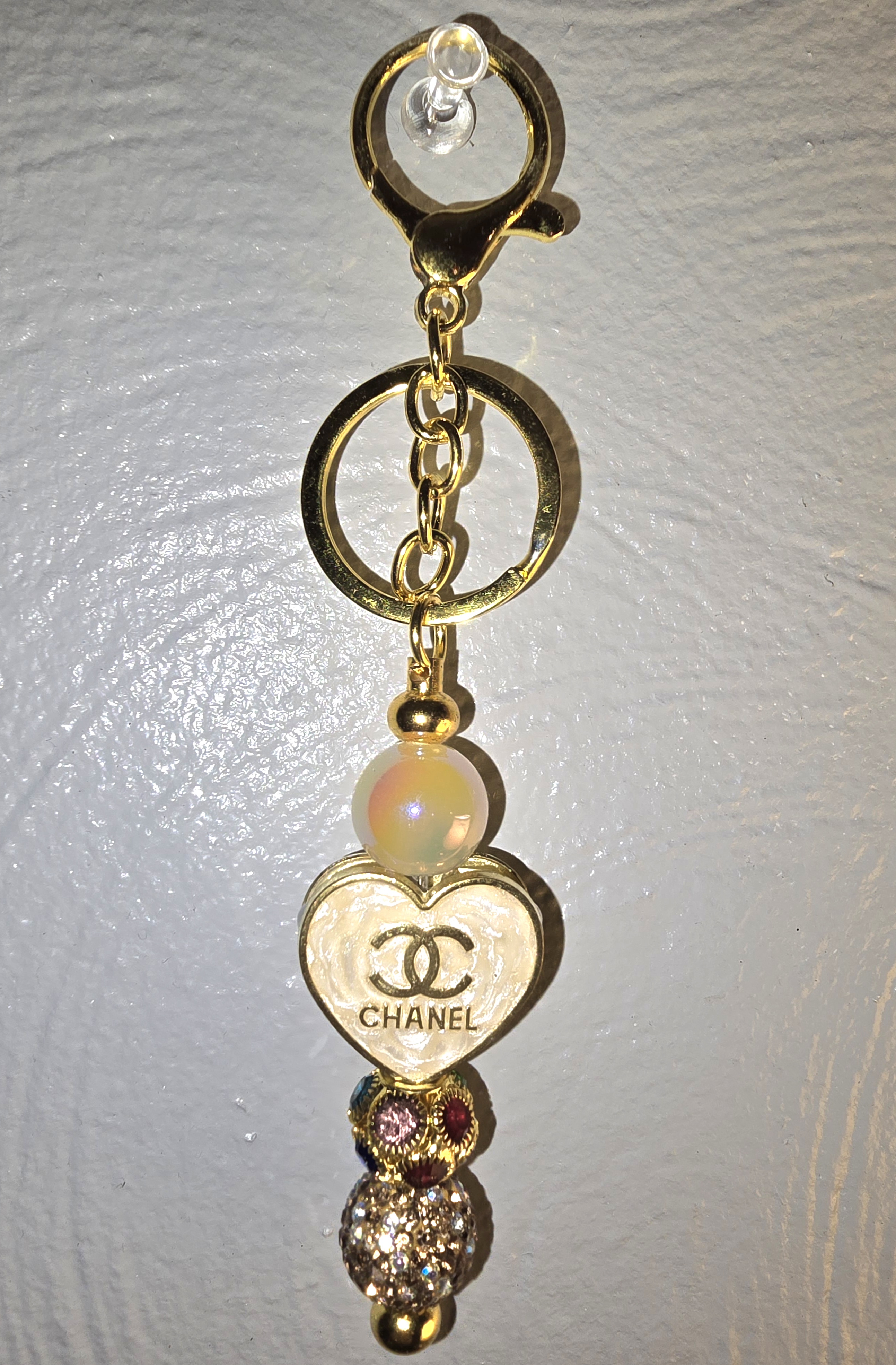 •   A heart-shaped charm engraved with the iconic CC logo, evoking timeless Parisian glamour.