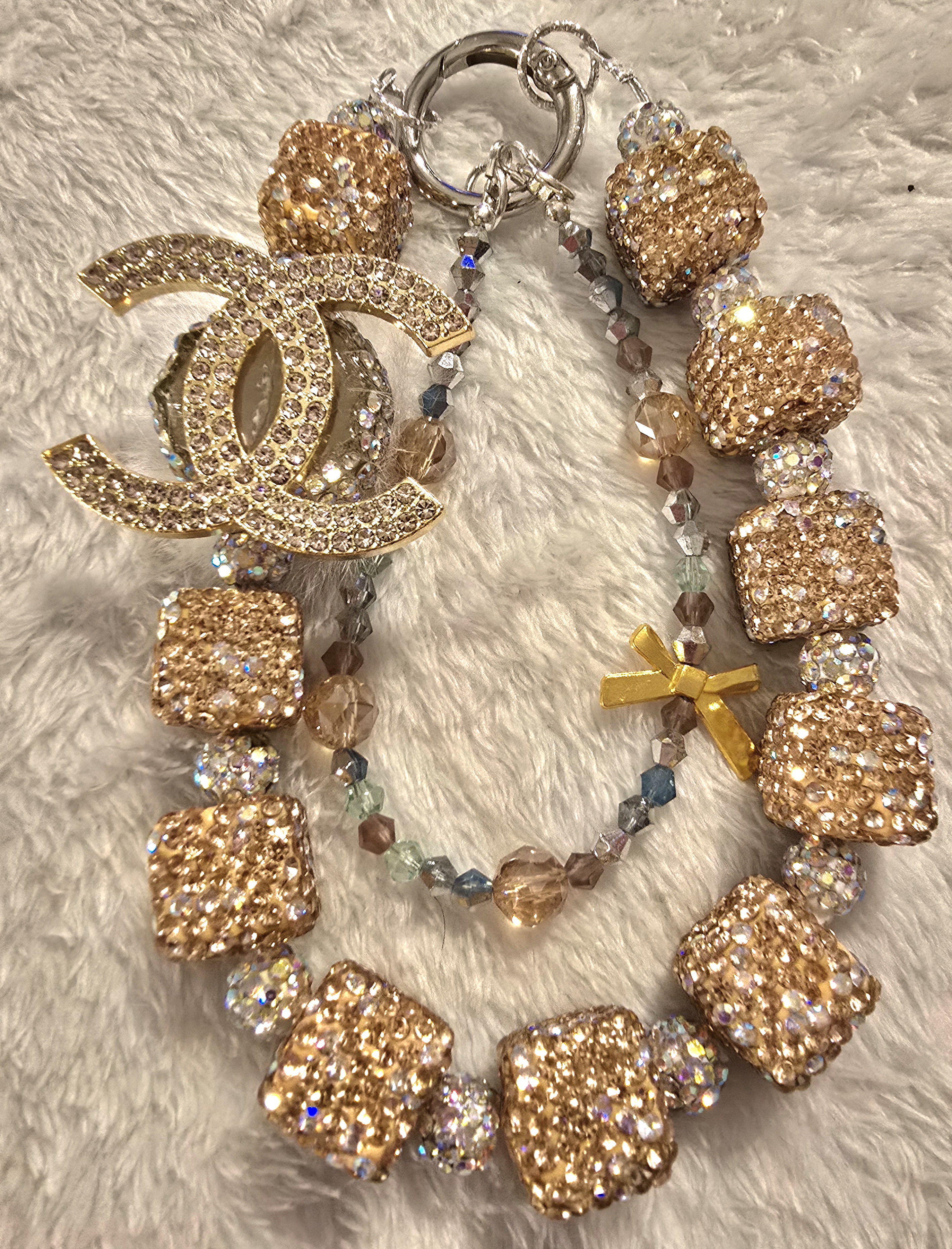 - Centerpiece: A dazzling CC logo encrusted with rhinestones, acting as the focal charm.