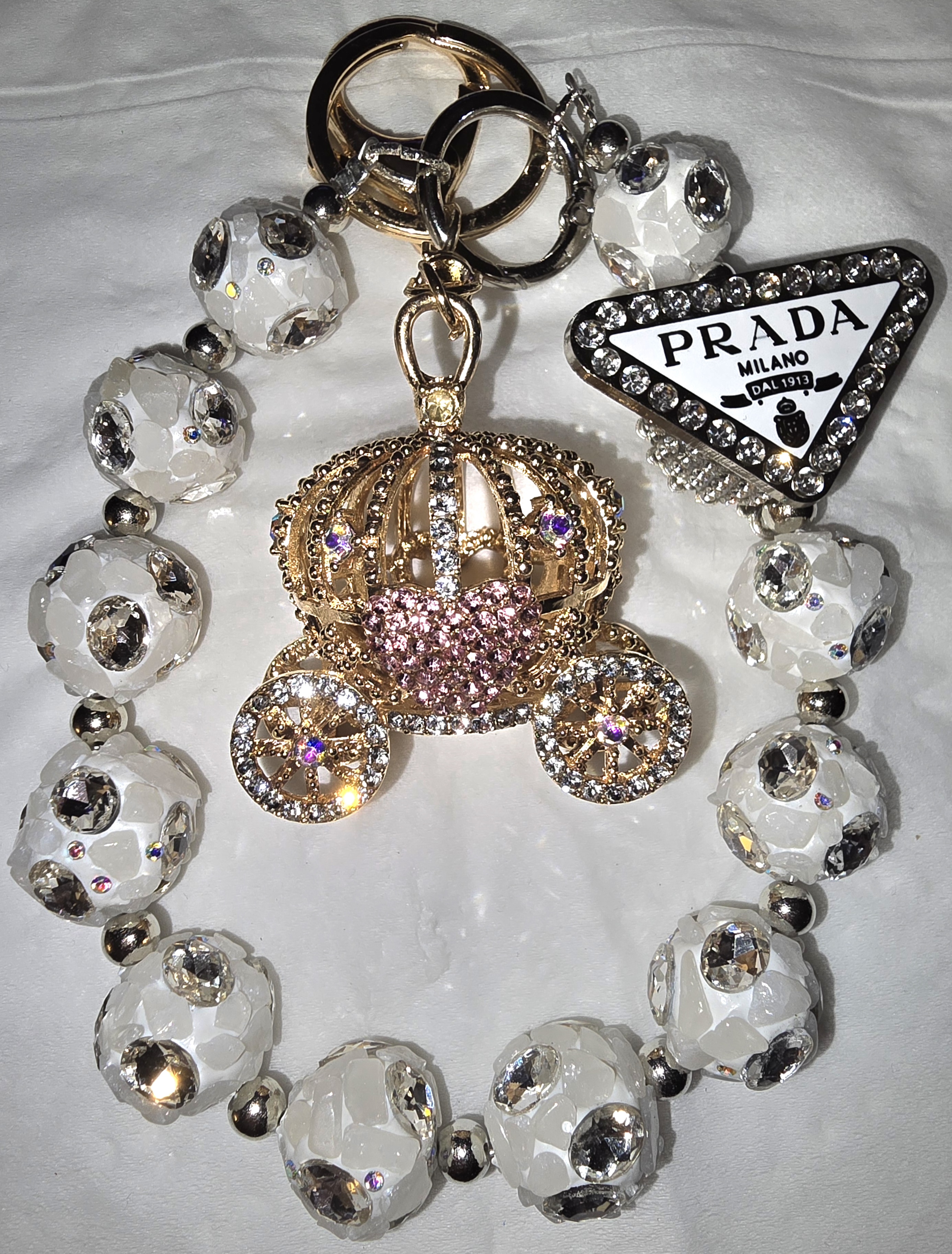 - Carriage Charm: A standout gold-toned charm shaped like a royal carriage, encrusted with pink and clear rhinestones. It evokes a fairy-tale aesthetic—think Cinderella meets couture.