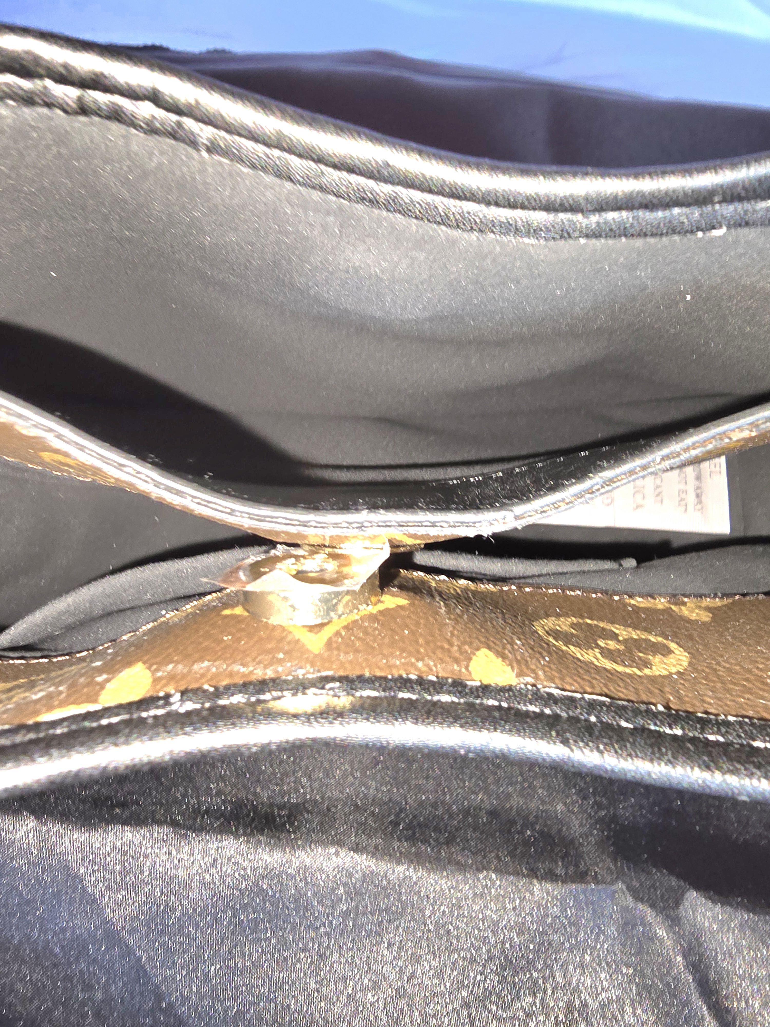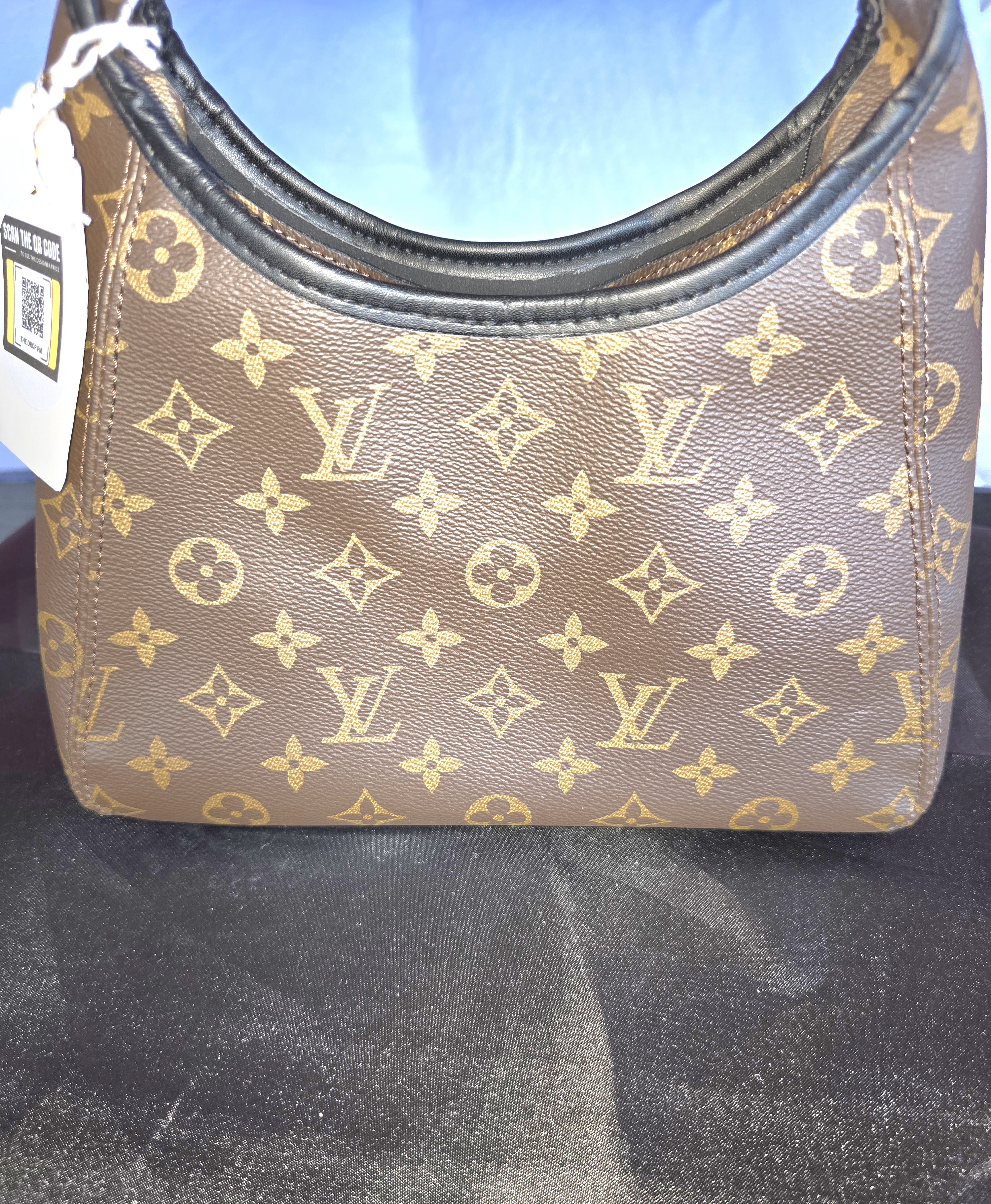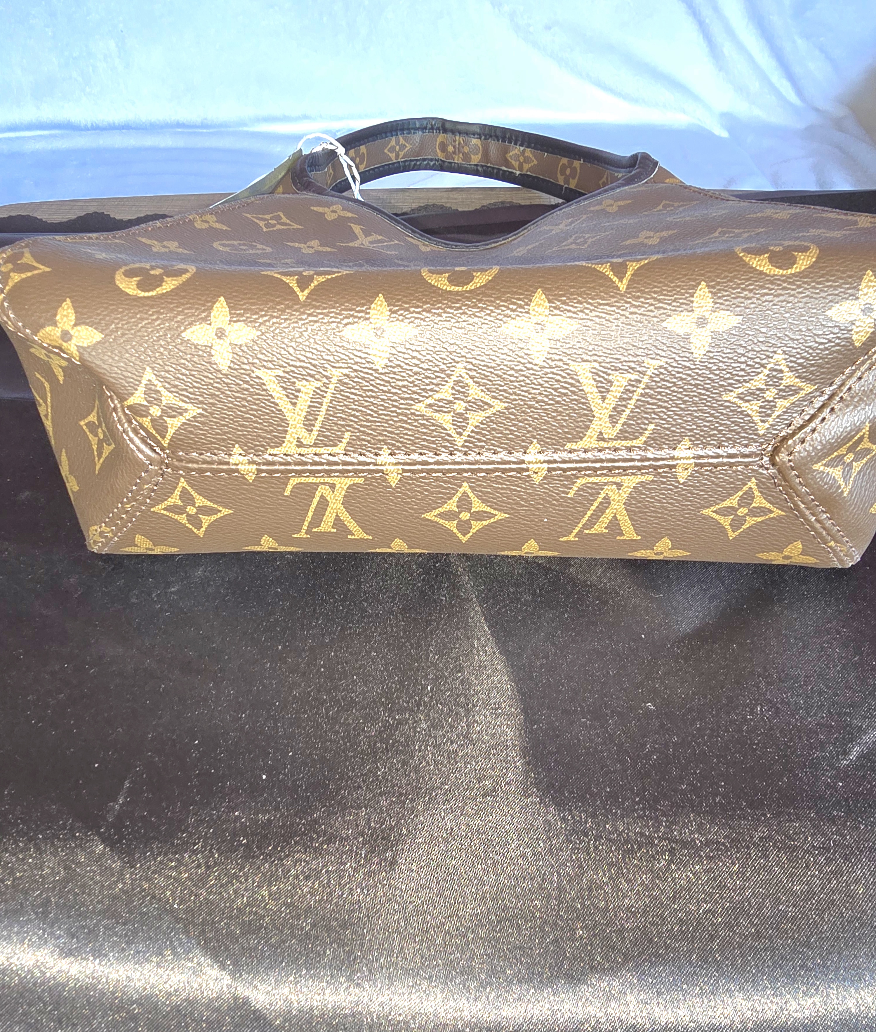 • Material: Signature monogram canvas leather in rich brown, adorned with golden LV initials and floral motifs.