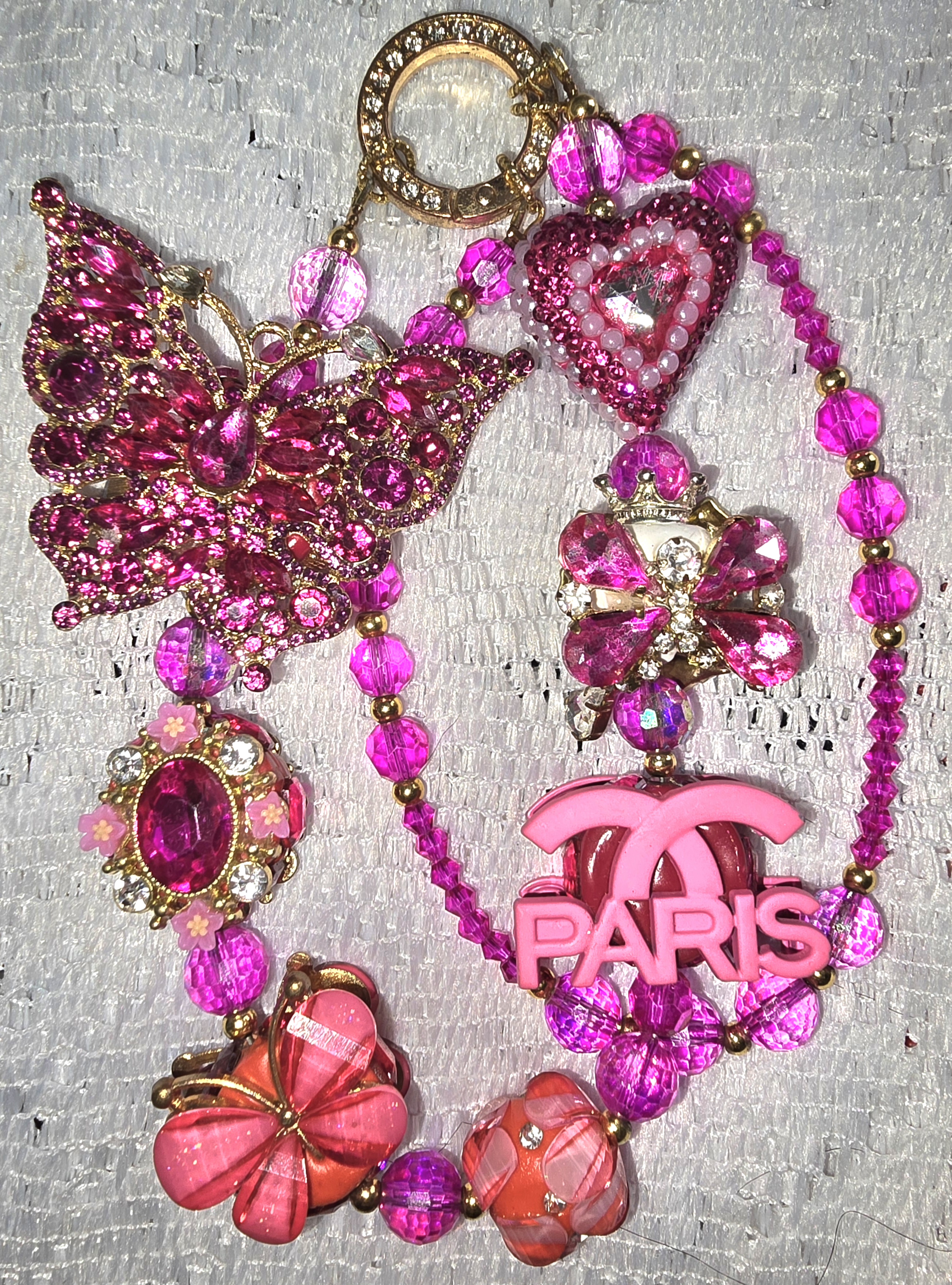 • Butterfly Charm: Lavishly encrusted in pink rhinestones, it evokes transformation and elegance—like a couture metamorphosis.
