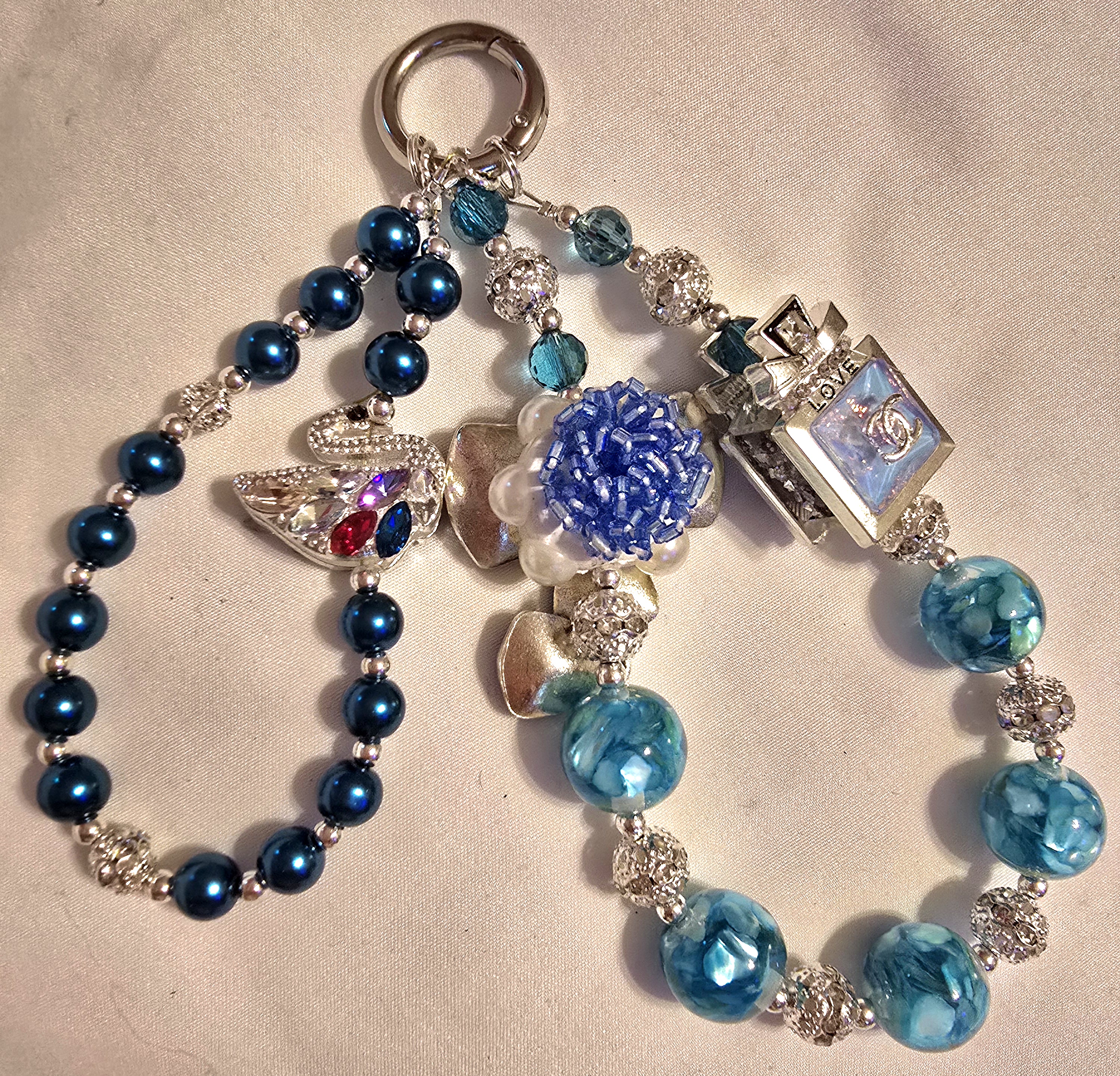 • Swan Charm: A graceful figure encrusted with multicolored rhinestones, symbolizing transformation and fantasy.