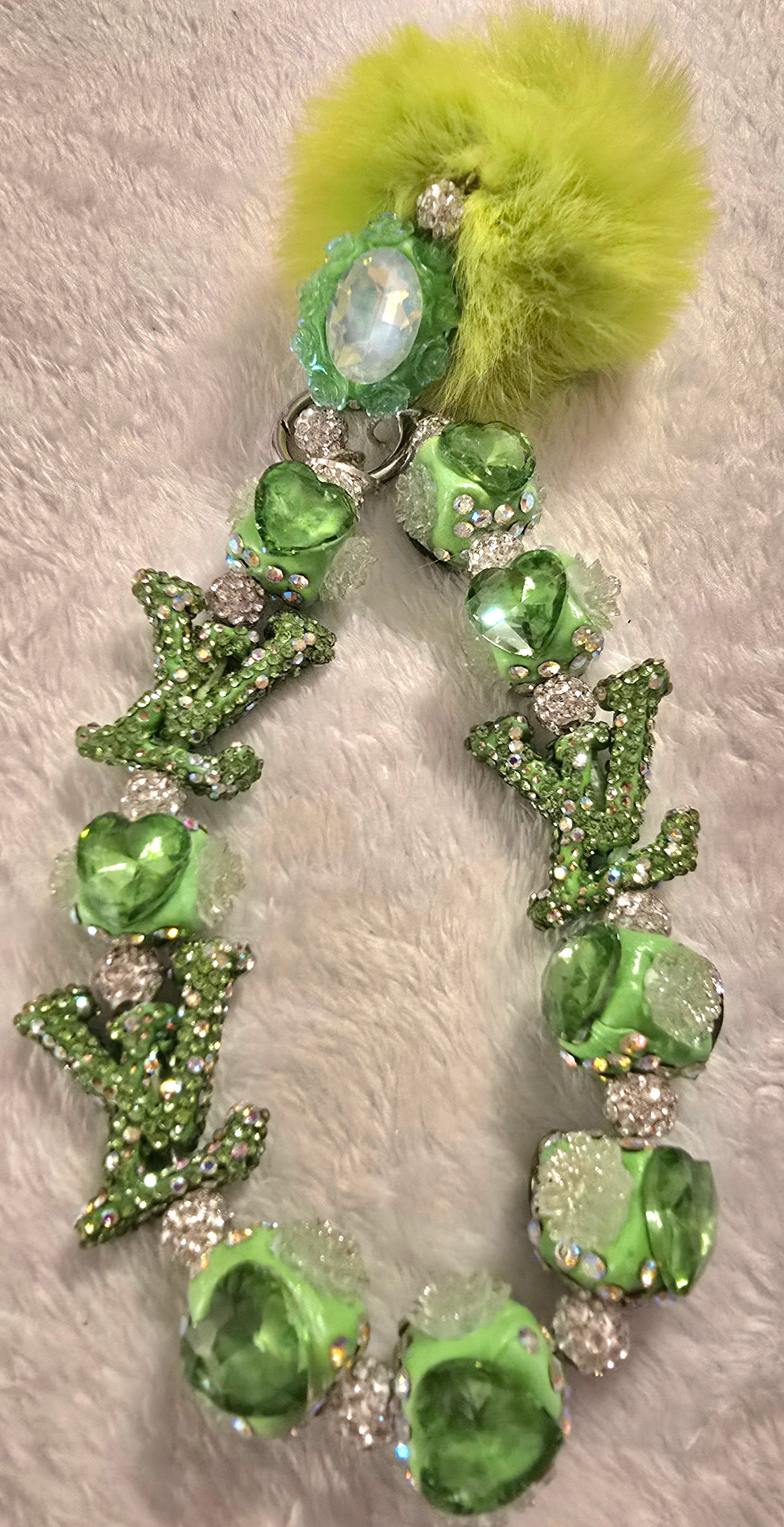 - π Heart-shaped green and crystal gems: Faceted for sparkle and elegance.