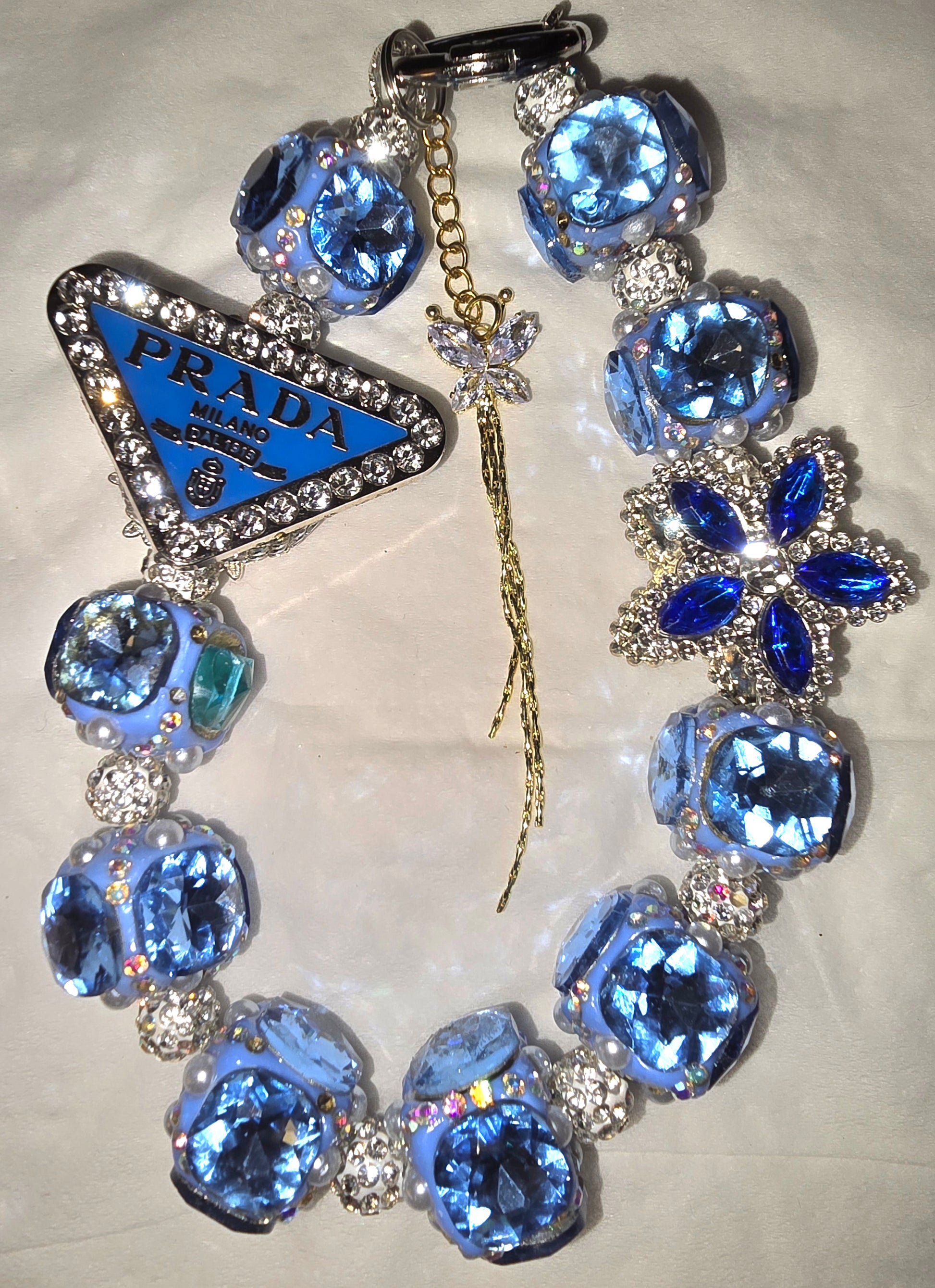 - Centerpiece Charm: A triangular PMÂ logo charm, adorned with shimmering blue enamel and rhinestones, anchors the design with iconic flair.