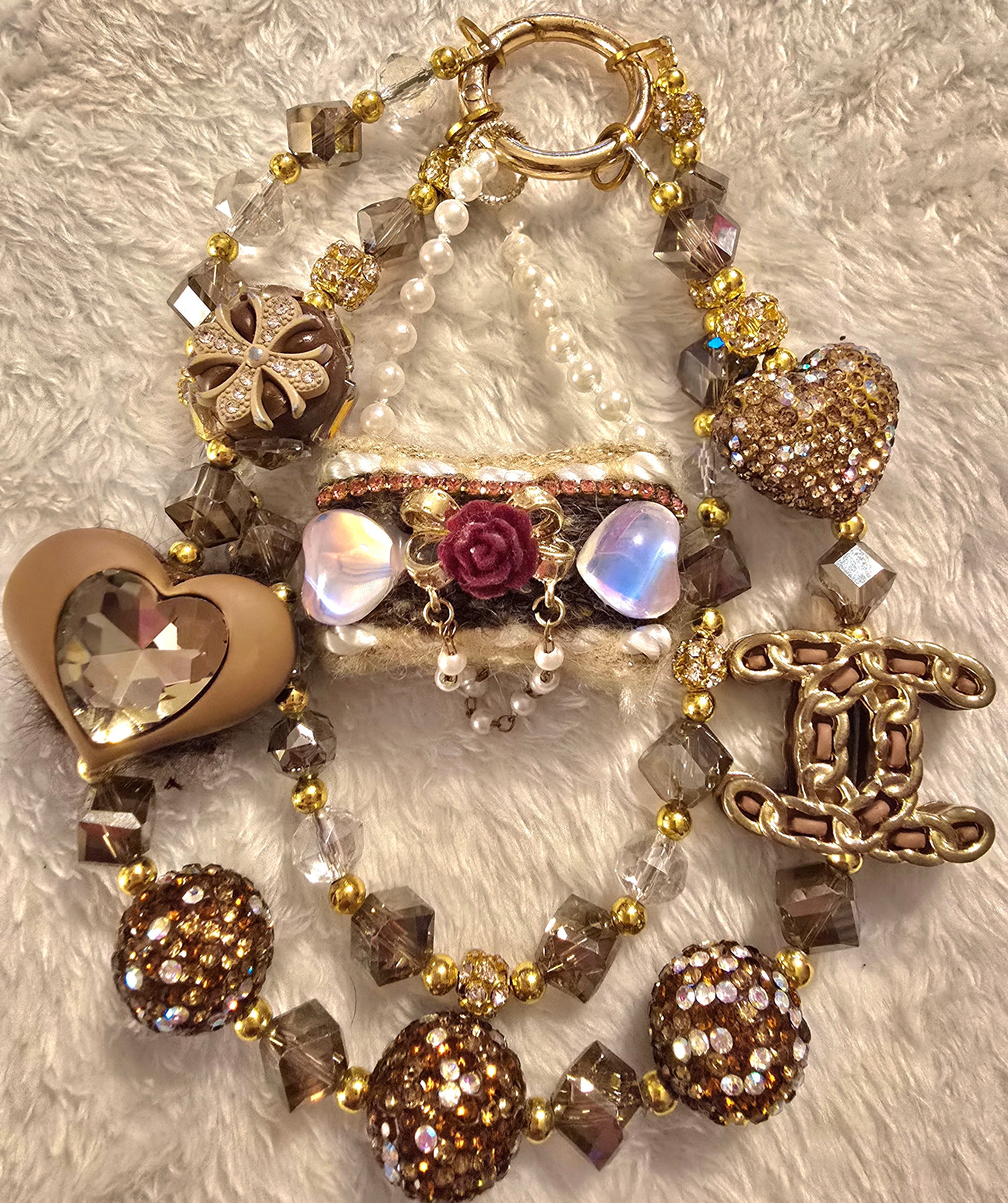 - Beaded Elegance: A mix of faceted amber and champagne-toned beads, creamy pearls, and rhinestone-encrusted spheres add texture and sparkle.