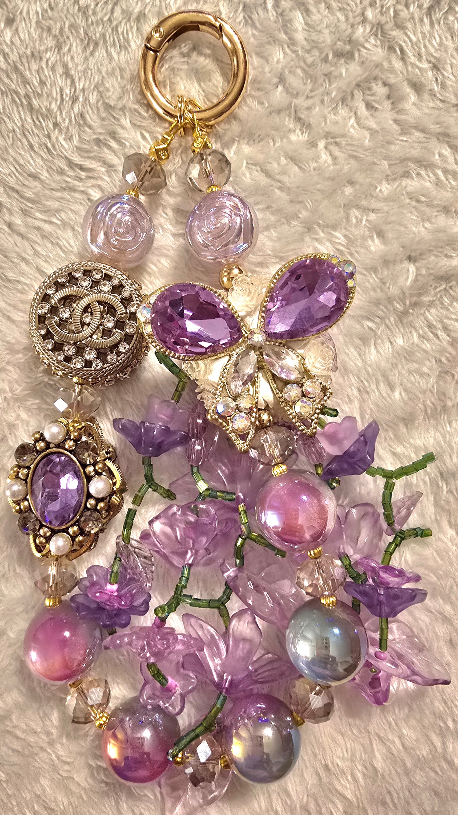 - A butterfly charm with oversized purple gemstones—playful and regal.