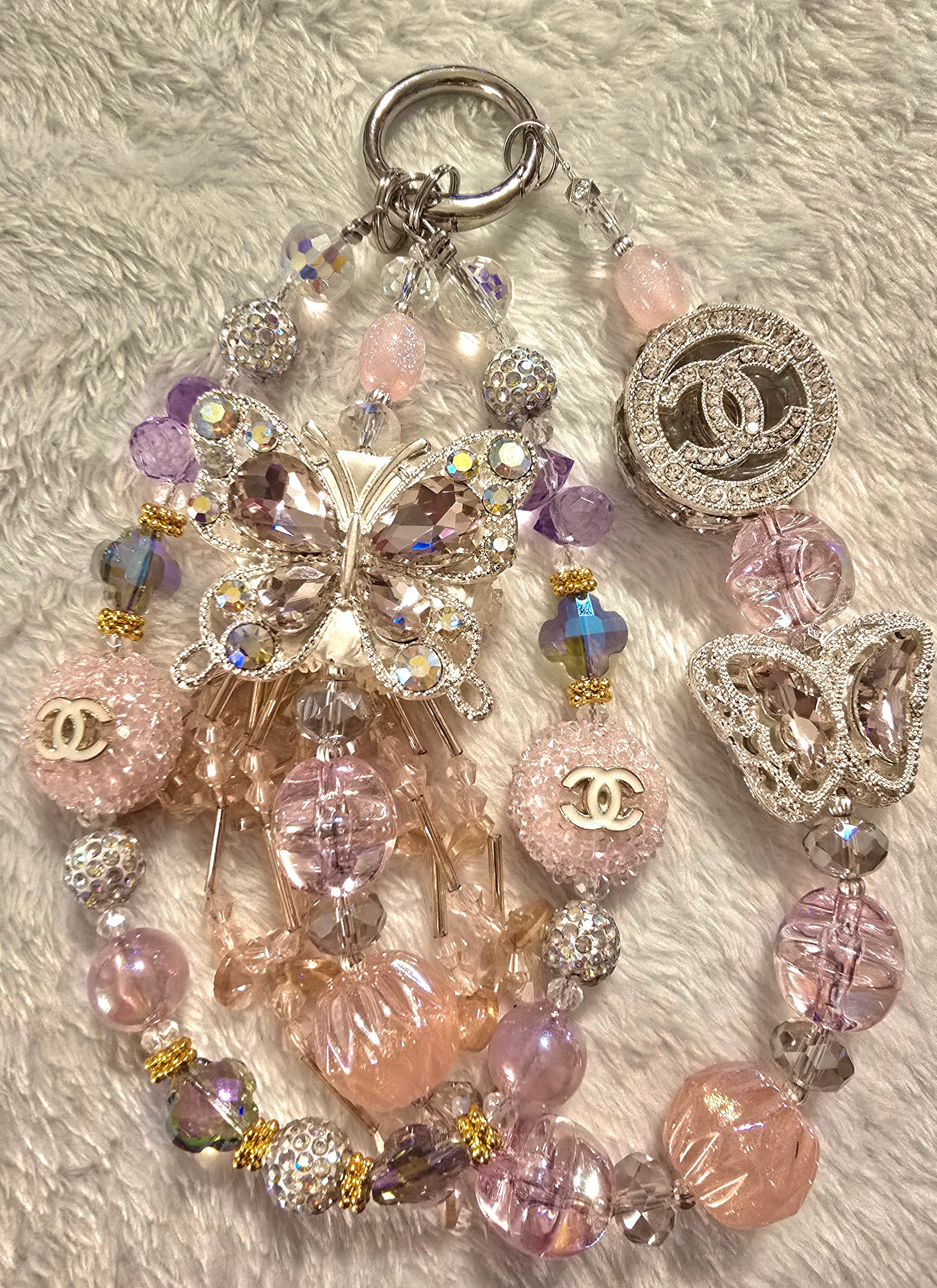 - Brand Elements: Multiple round beads and charms feature the iconic CC logo, adding a luxurious, branded touch.