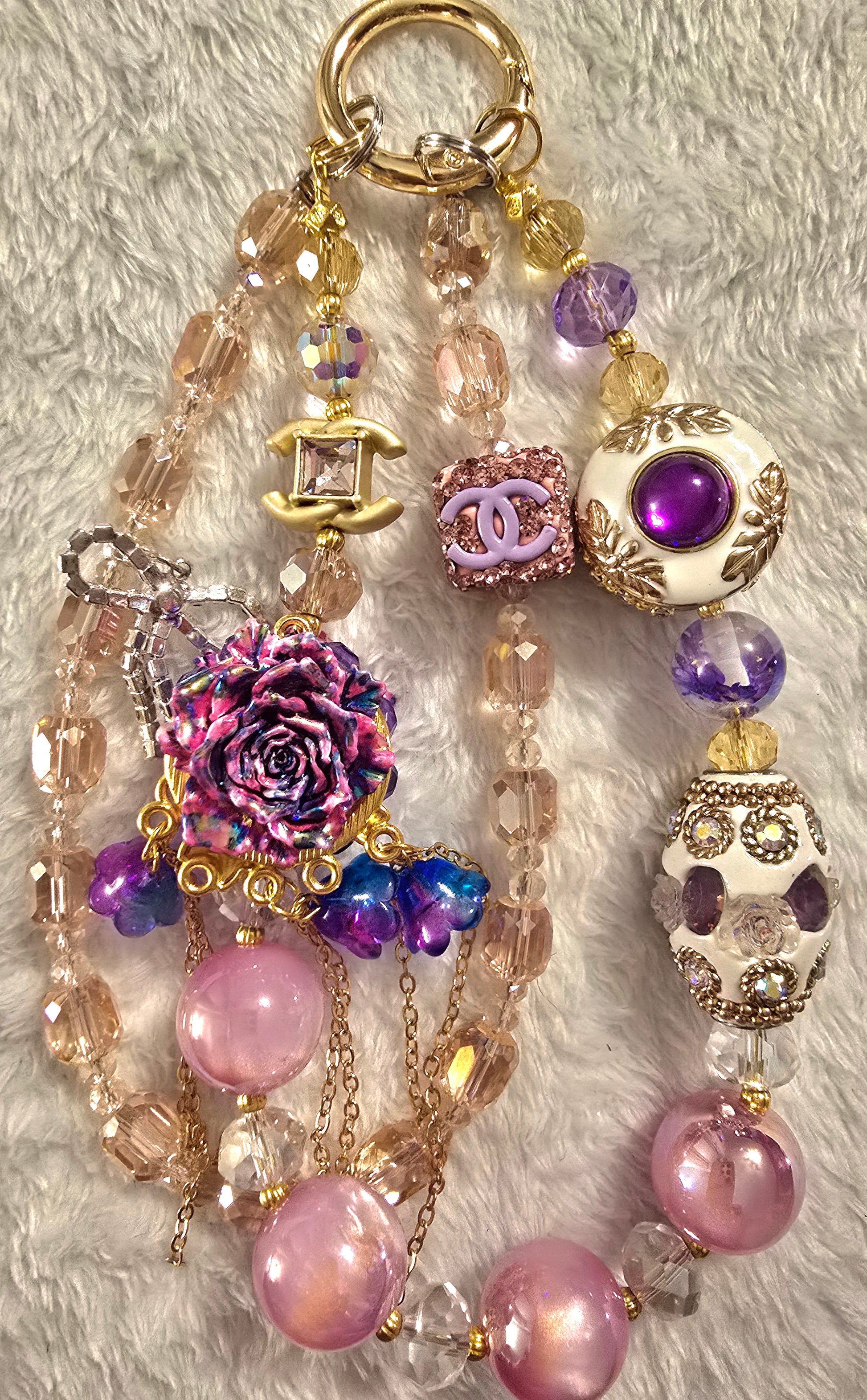 - A multicolored rose charm with dangling blue and purple beads—adds movement and a romantic flair.