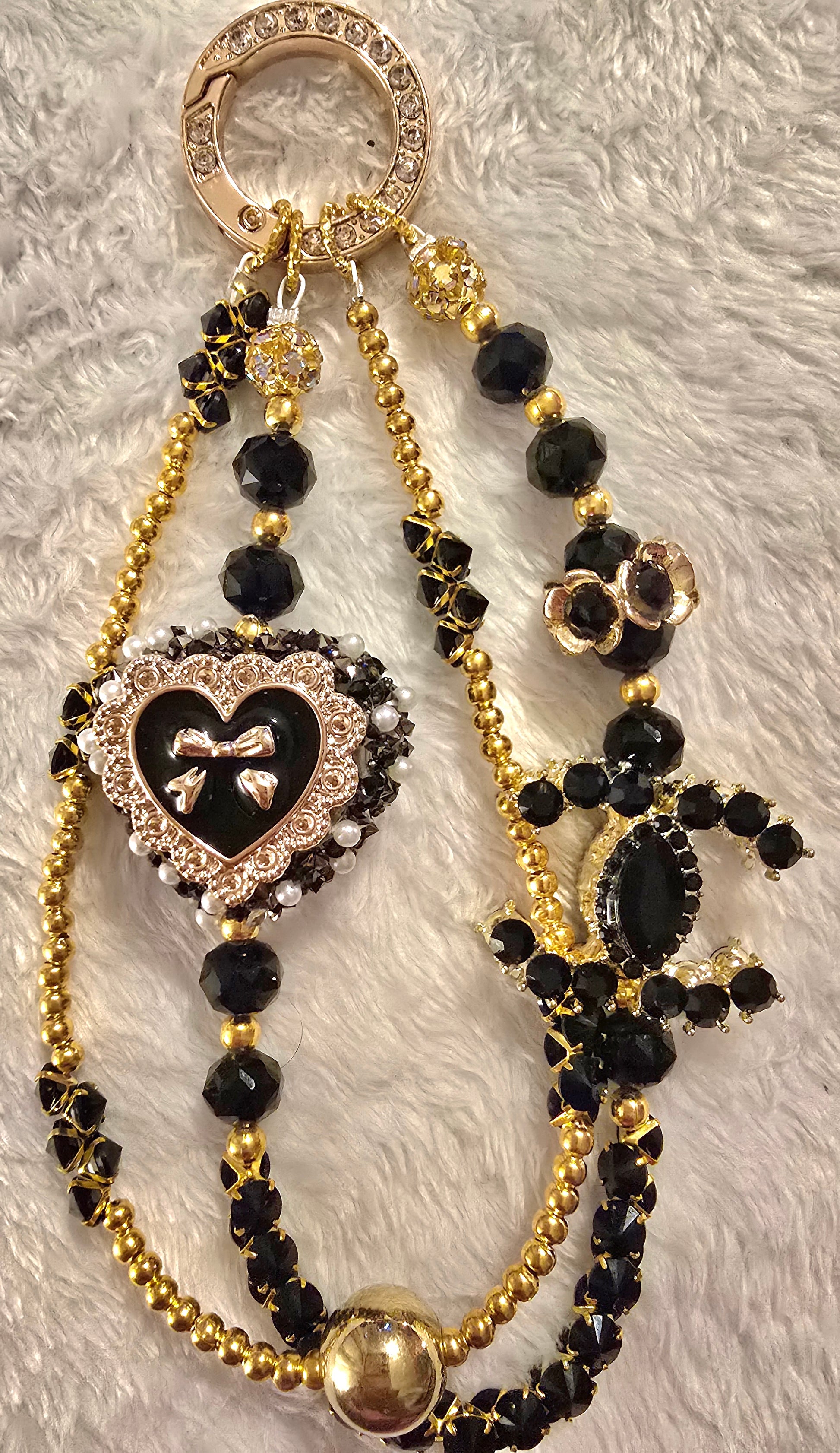 - Color Palette: Dominantly black and gold, with touches of pearl and rhinestone.