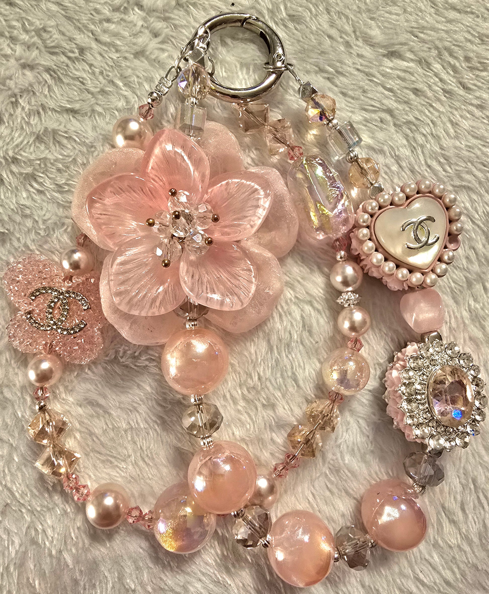 - A heart-shaped charm surrounded by pearls, also featuring the CC logo
