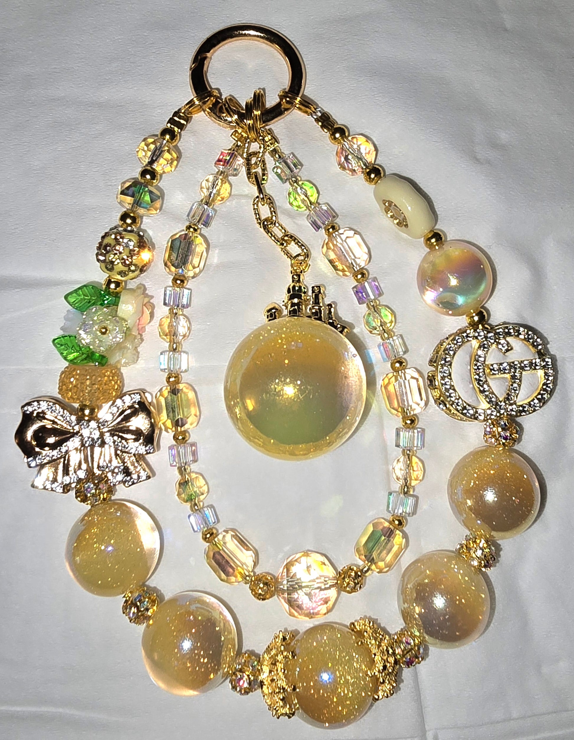 - Large glitter bead: Golden and bold, it anchors the piece with a dazzling pop.