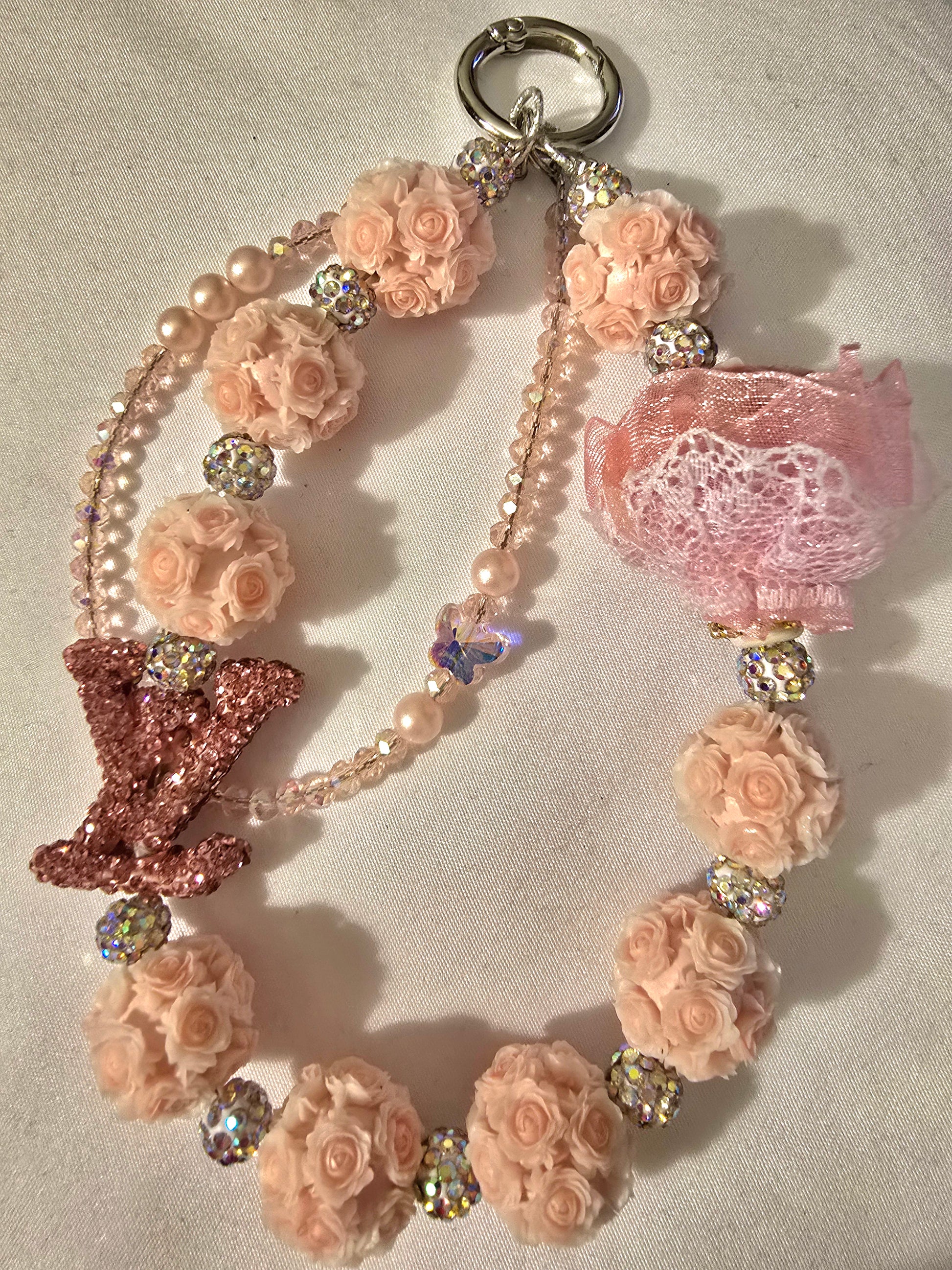 - ✨ Glittery “LV” Emblem: The standout element—a glittered pink charm styled as "LV"—evokes luxury branding with a playful twist, perfect for fans of iconic fashion houses.