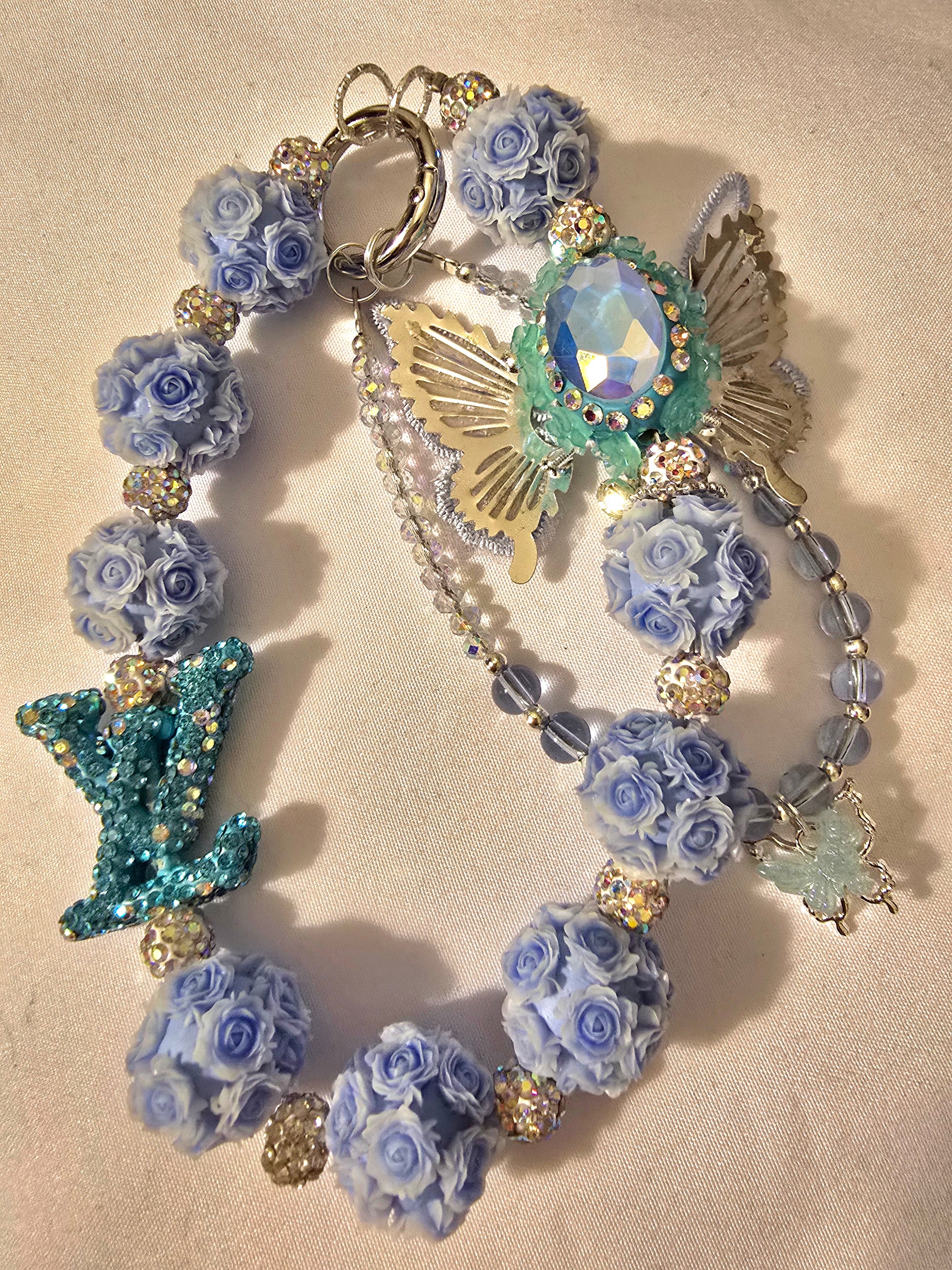 - A large butterfly charm with silver and blue detailing, evoking a dreamy, ethereal vibe