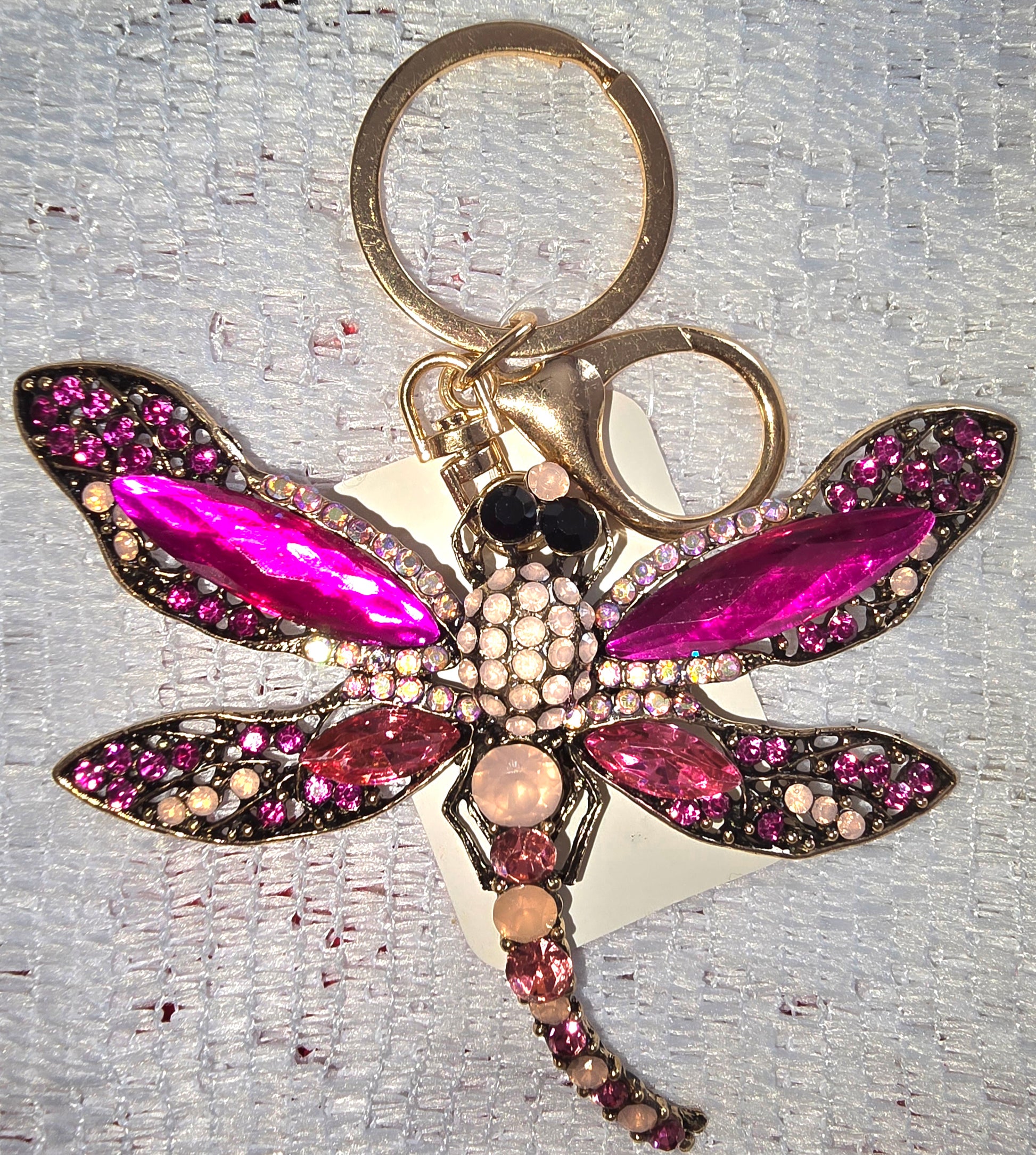 This dazzling dragonfly keychain is a miniature masterpiece of whimsy and elegance. Its wings shimmer with oversized blush-pink gems, framed by delicate lilac and icy rhinestones that catch the light like dew at dawn. The body is a graceful cascade of soft pink and pearl-white stones, leading to jet-black gem eyes that add a touch of mystery. Suspended from a sleek gold-tone ring and clasp, it’s both a statement charm and a luxe accessory—perfect for adorning handbags, keyrings, or even as a playful zipper pull.